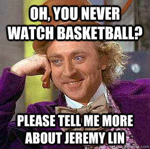 Oh, you never watch basketball? please tell me more about jeremy lin