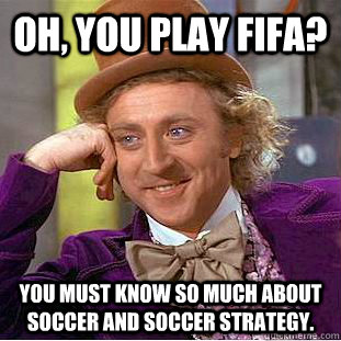 Oh, you play fifa? You must know so much about soccer and soccer strategy.
