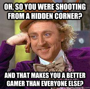 oh, so you were shooting from a hidden corner? and that makes you a better gamer than everyone else?