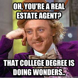 Oh, you're a real estate agent? that college degree is doing wonders..