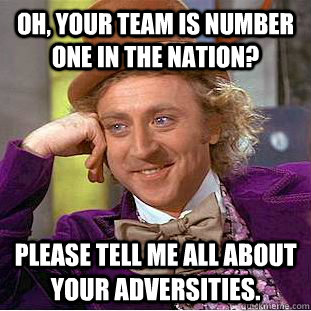 Oh, Your team is number one in the nation? Please tell me all about your adversities.
