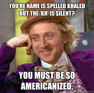You're name is spelled KHaled but the 'kh' is silent? You must be so americanized.