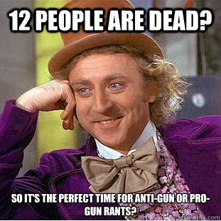 12 people are dead? So it's the perfect time for anti-gun or pro-gun rants?