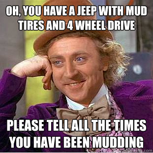 Oh, you have a jeep with mud tires and 4 wheel drive please tell all the times you have been mudding