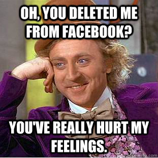 Oh, you deleted me from Facebook? You've really hurt my feelings.