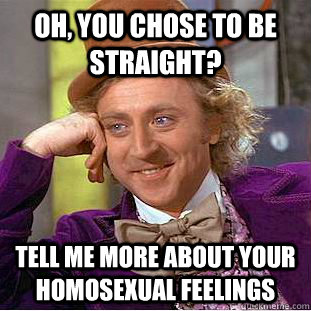 Oh, you chose to be straight? Tell me more about your homosexual feelings