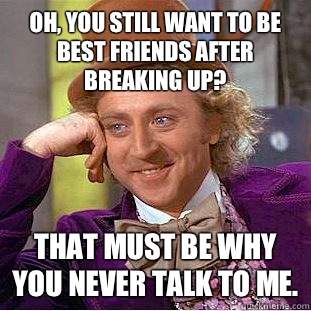 Oh, you still want to be best friends after breaking up? That must be why you never talk to me.