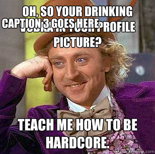 Oh, so your drinking vodka in your profile picture? Teach me how to be hardcore. Caption 3 goes here