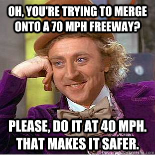 Oh, you're trying to merge onto a 70 mph freeway? Please, do it at 40 mph. That makes it safer.
