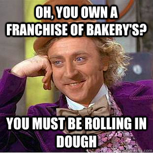 Oh, you own a franchise of bakery's? You must be rolling in dough