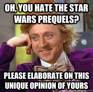 Oh, you hate the star wars prequels? please elaborate on this unique opinion of yours