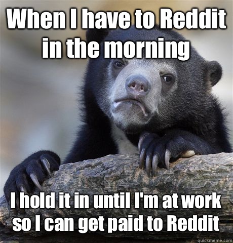When I have to Reddit in the morning I hold it in until I'm at work so I can get paid to Reddit