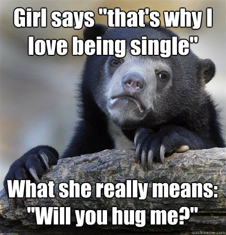 Girl says "that's why I love being single" What she really means: "Will you hug me?"