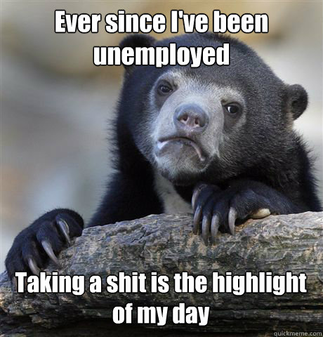 Ever since I've been unemployed Taking a shit is the highlight of my day