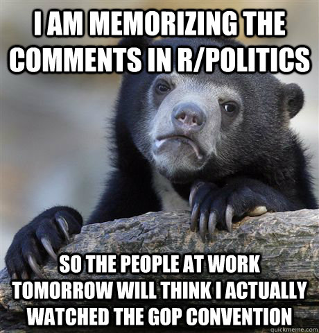 I am memorizing the comments in r/politics So the people at work tomorrow will think i actually watched the GOP Convention