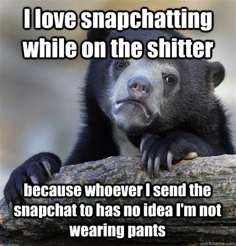 I love snapchatting while on the shitter because whoever I send the snapchat to has no idea I'm not wearing pants
