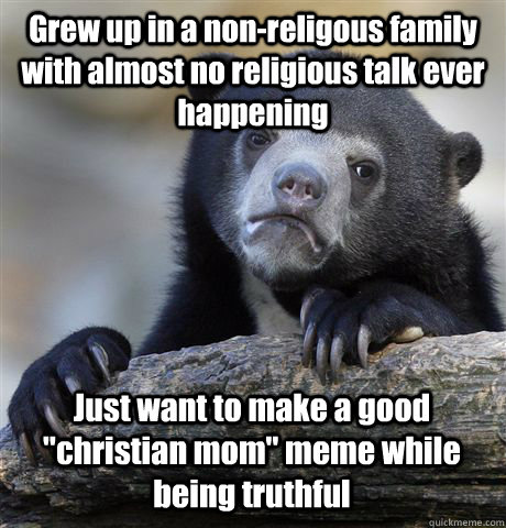 Grew up in a non-religous family with almost no religious talk ever happening Just want to make a good "christian mom" meme while being truthful