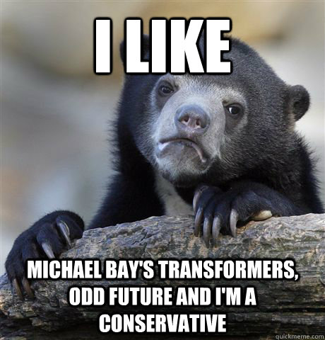 I like Michael Bay's Transformers, Odd Future and I'm a Conservative