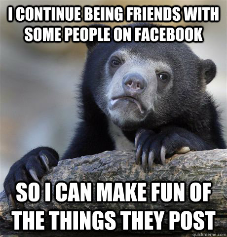 I continue being friends with some people on facebook so I can make fun of the things they post