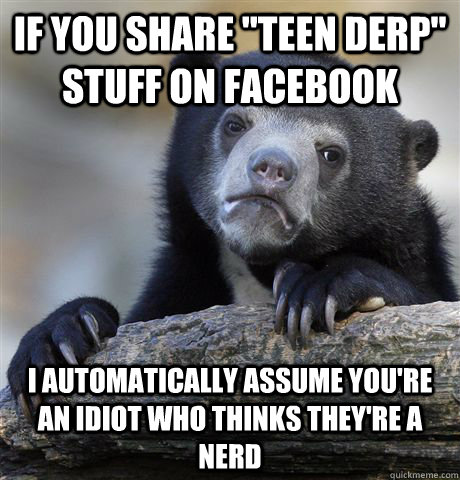 If you share "Teen Derp" stuff on facebook I automatically assume you're an idiot who thinks they're a nerd