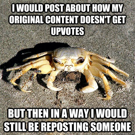 I would post about how my original content doesn't get upvotes but then in a way i would still be reposting someone