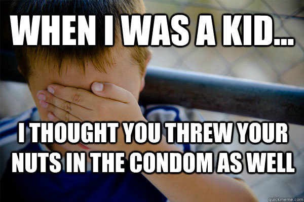 WHEN I WAS A KID... I thought you threw your nuts in the condom as well