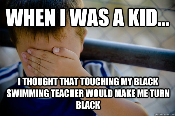 WHEN I WAS A KID... i thought that touching my black swimming teacher would make me turn black