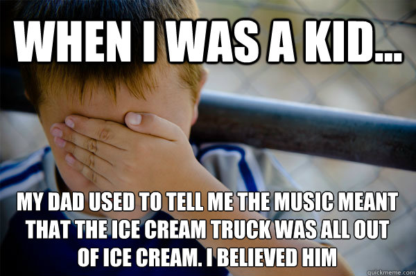 WHEN I WAS A KID... my dad used to tell me the music meant that the ice cream truck was all out of ice cream. I believed him