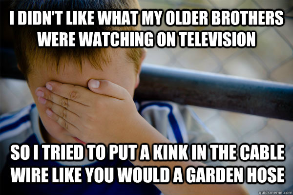 I didn't like what my older brothers were watching on television So I tried to put a kink in the cable wire like you would a garden hose