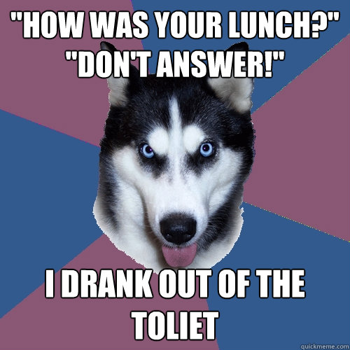 "how was your lunch?" "don't answer!" I drank out of the toliet