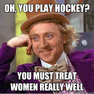 Oh, you play hockey? YOu must treat women really well