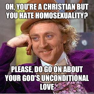 Oh, you're a Christian but you hate homosexuality? Please, do go on about your God's unconditional love