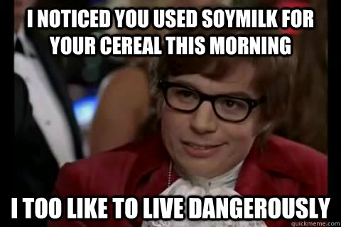 I noticed you used soymilk for your cereal this morning i too like to live dangerously