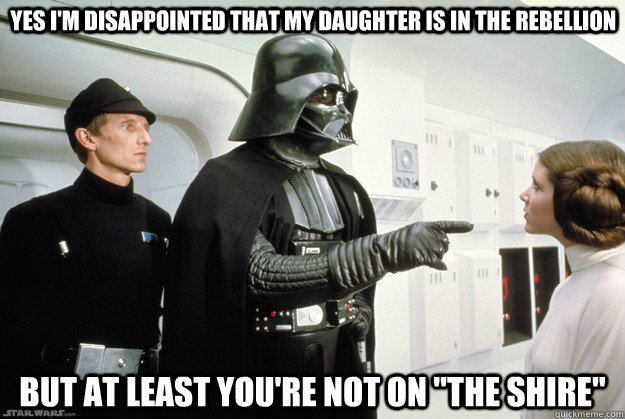 Yes I'm disappointed that my daughter is in the rebellion but at least you're not on "THE SHIRE"