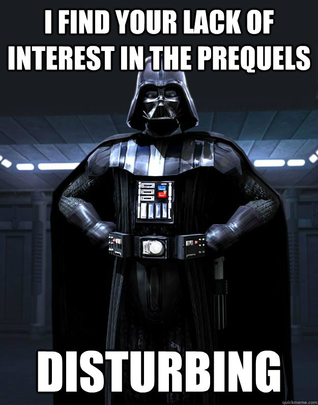 I FIND YOUR LACK OF interest in the prequels Disturbing