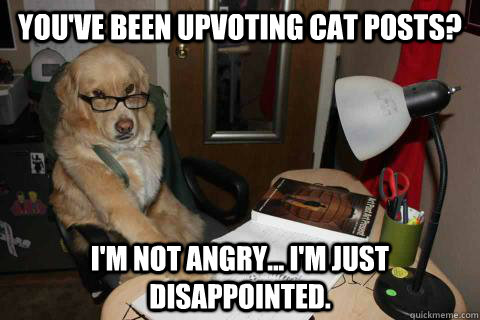 You've been upvoting cat posts? I'm not angry... I'm just disappointed.