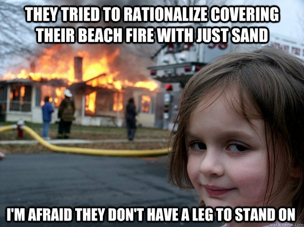 They tried to rationalize covering their beach fire with just sand I'm afraid they don't have a leg to stand on