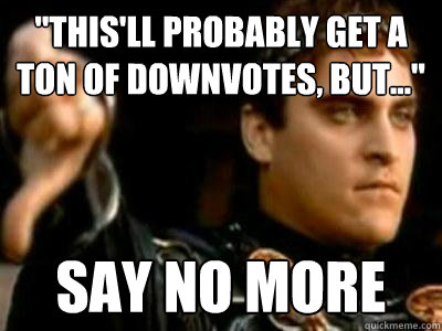 "This'll probably get a ton of downvotes, but..." Say no more