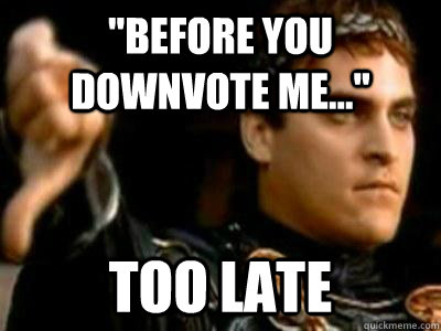 "Before you downvote me..." Too late
