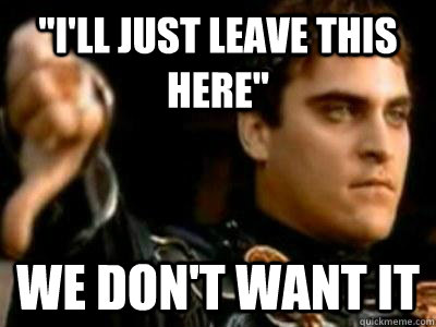 "i'll just leave this here" we don't want it