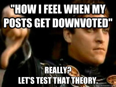 "How I feel when my posts get downvoted" Really? Let's test that theory.