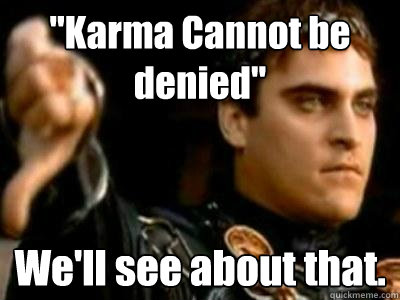 "Karma Cannot be denied" We'll see about that.