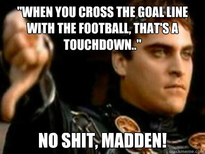 "When you cross the goal line with the football, that's a touchdown.." No shit, Madden!