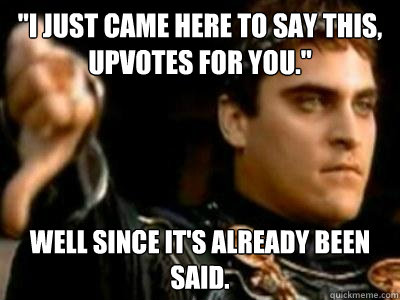 "I just came here to say this, Upvotes for you." Well since it's already been said.