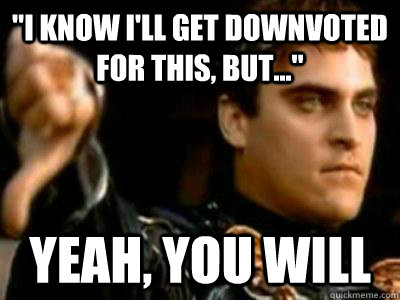 "I know I'll get downvoted for this, but..." Yeah, you will