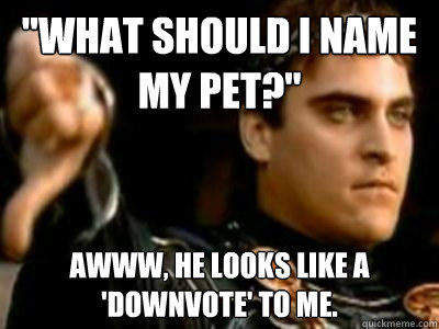 "What should I name my pet?" Awww, he looks like a 'downvote' to me.