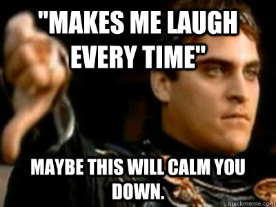 "Makes me laugh every time" Maybe this will calm you down.