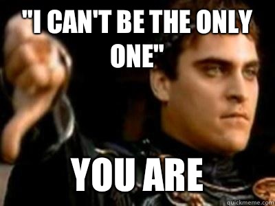 "I can't be the only one" You are