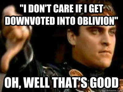 "I don't care if i get downvoted into oblivion" Oh, well that's good