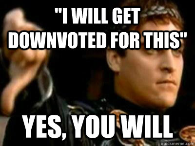 "I will get downvoted for this" Yes, you will